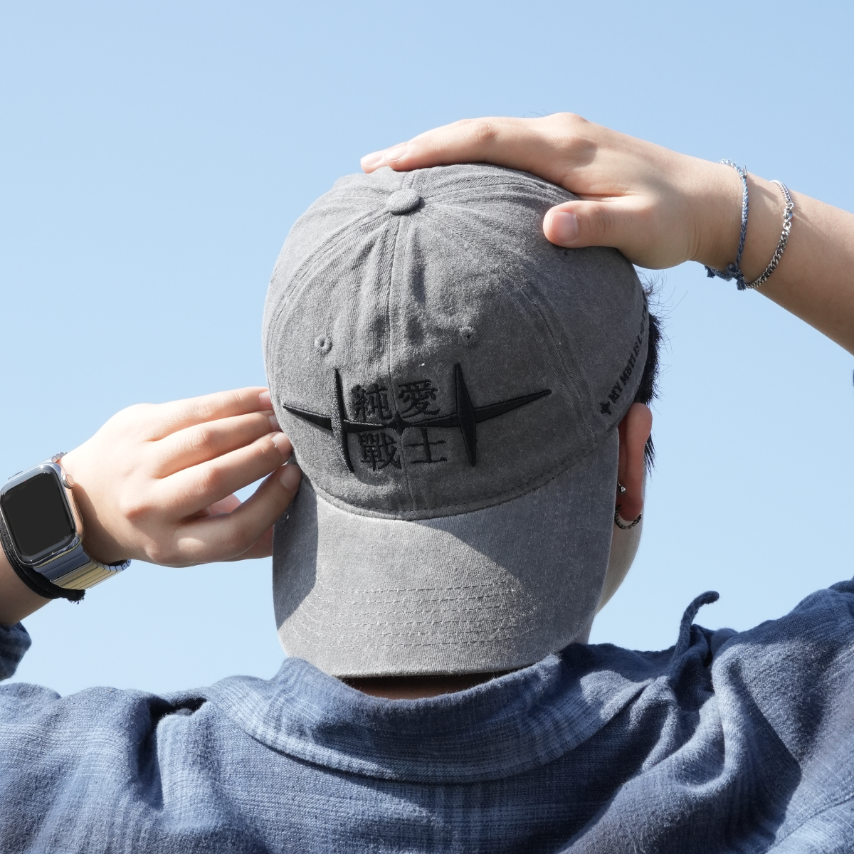 帽前「純愛戰士」立體刺繡象徵信念,