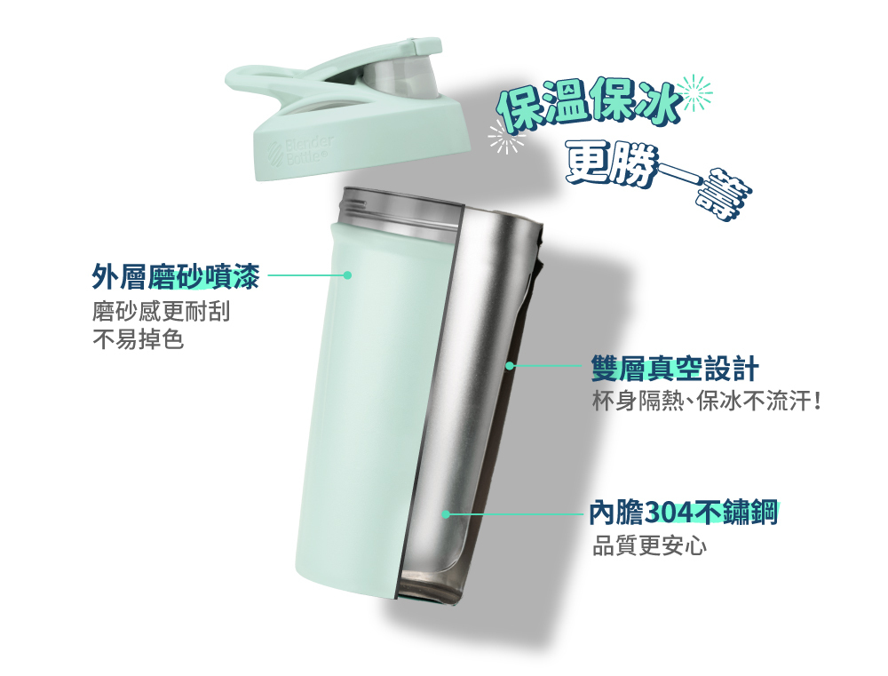 • 雙層真空絕緣不鏽鋼,保冰最高達24小時